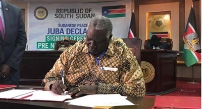 وقعت الحكومة السودانية وحركات مسلحة اليوم الأربعاء، في عاصمة جنوب السودان جوبا، اتفاقاً لإعلان المبادئ، حيث نص الاتفاق على بدء التفاوض في الرابع عشر من أكتوبر المقبل ويستمر لمدة شهر.